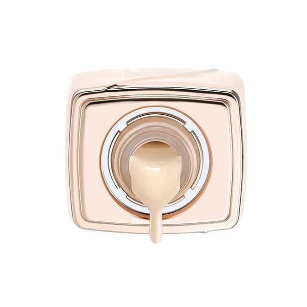 1.洁面润肤后,将粉底液挤在手背适量取粉